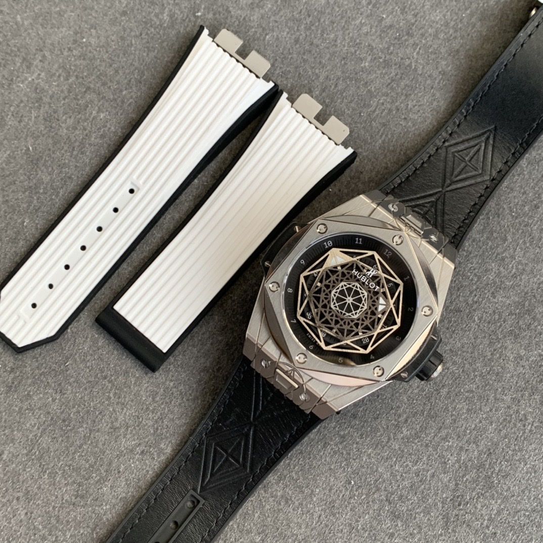 ساعة هوبلو بيغ بانغ سانغ بلو 415.NX.1112.VR.MXM16 النسخة المقلدة للرجال السويسرية - قرص هيكلي، علبة من التيتانيوم