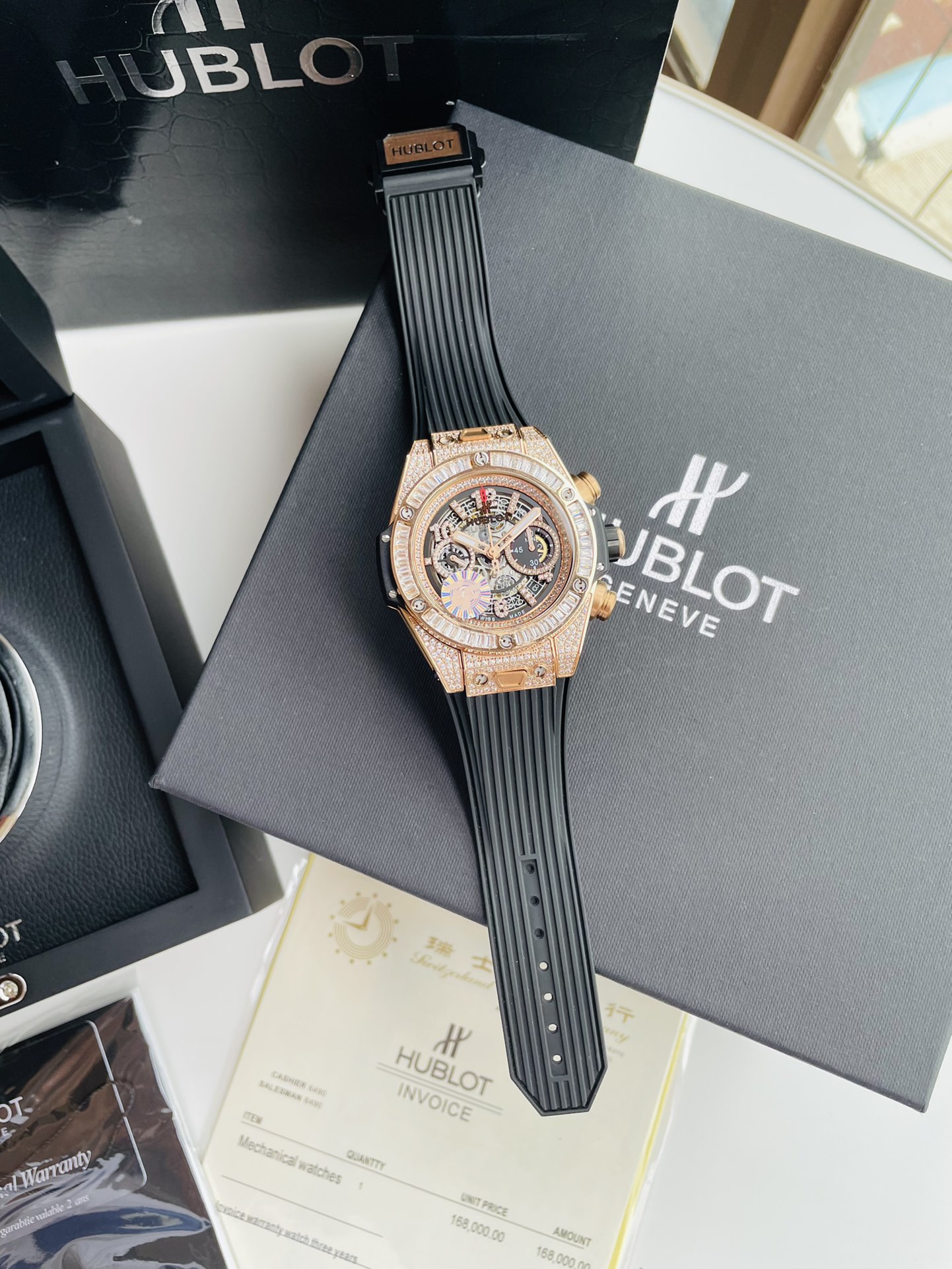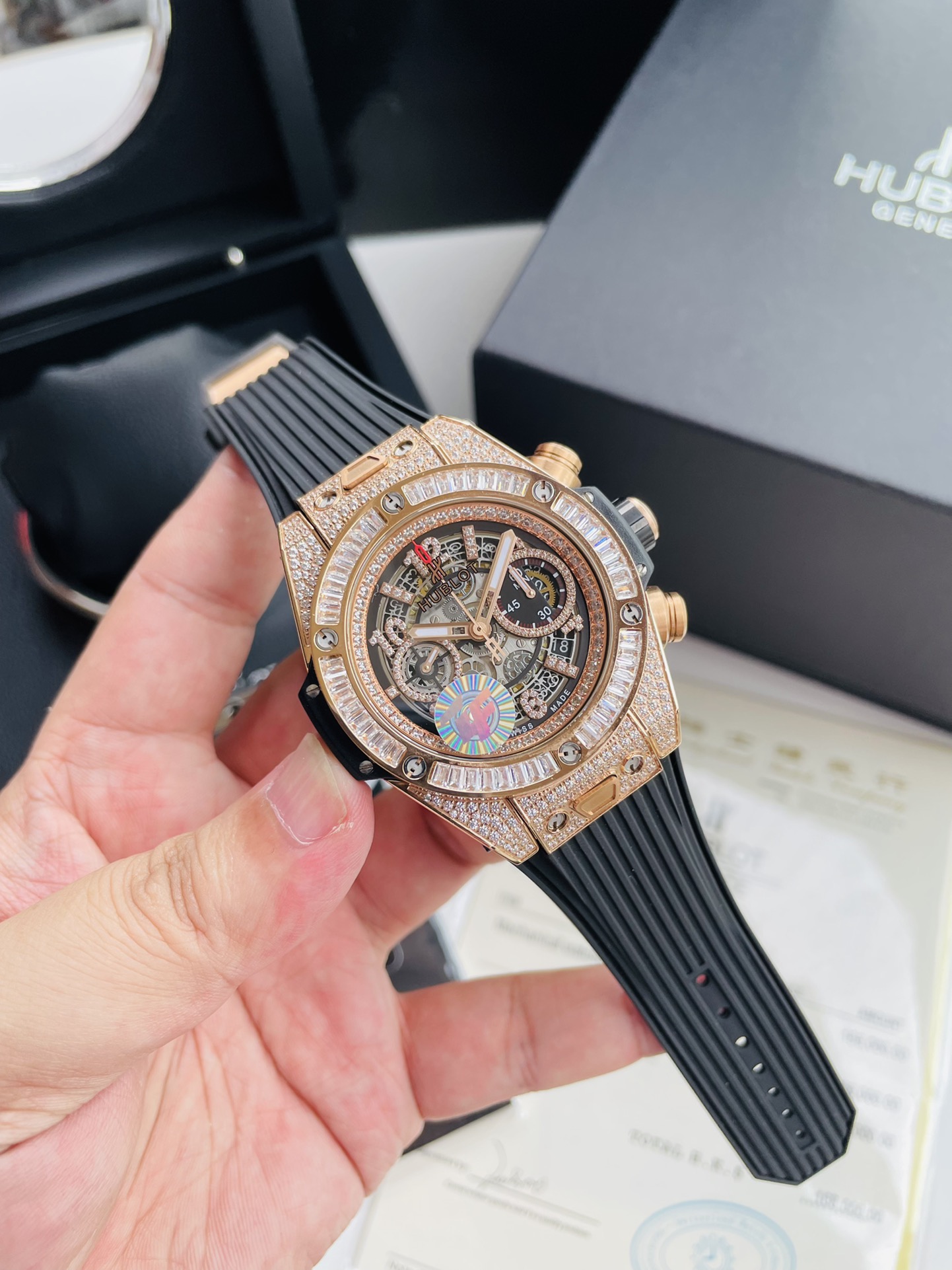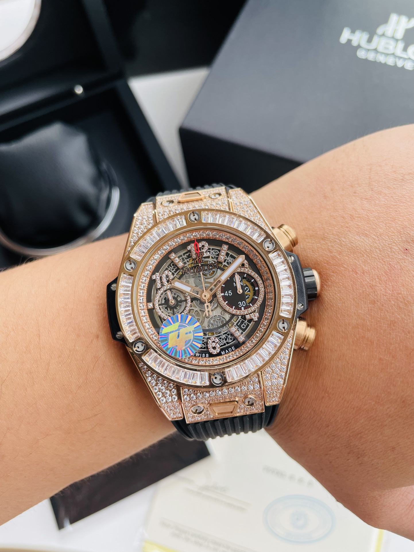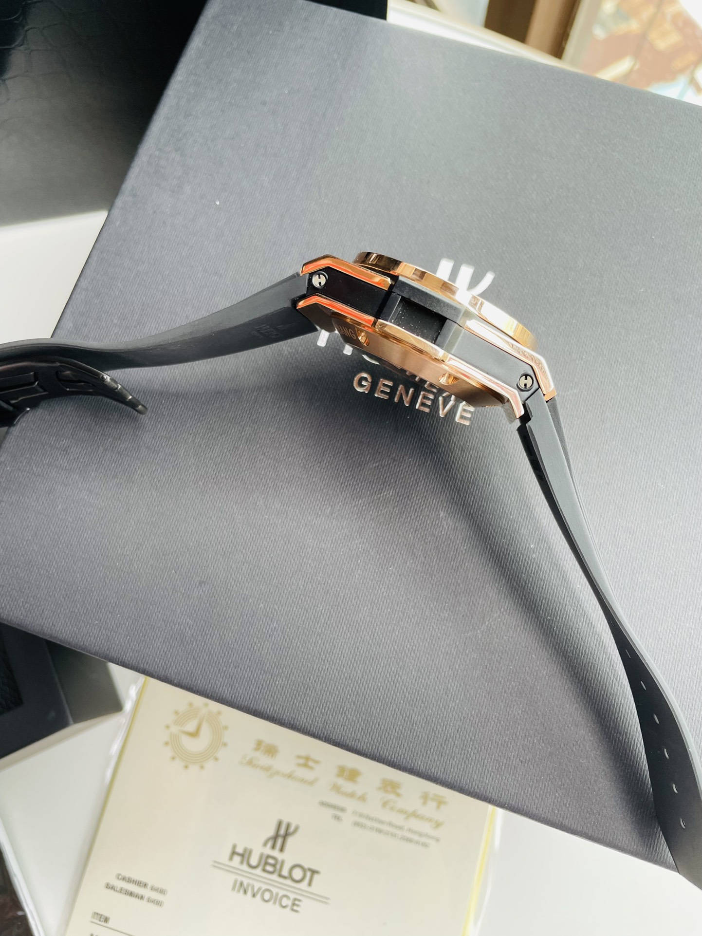نسخة فاخرة من ساعة هوبلو بيغ بانغ 421.OX.1180.RX.0904 – واجهة هيكلية سويسرية، علبة ذهبية وردية بقطر 45 مم
