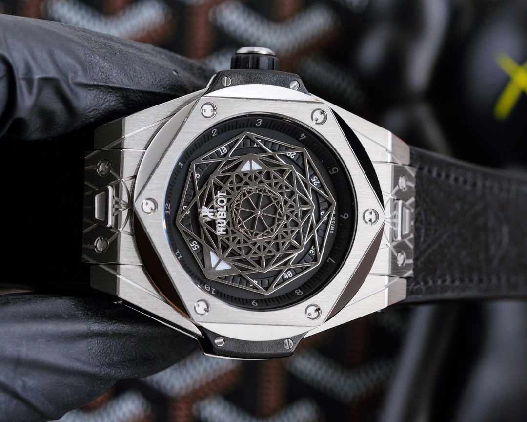 Hodinářská unie s divadlem, spojení umění a modernity, Replica Hublot Big Bang Sang Bleu 415.NX.1112.VR.MXM16 je více než jen hodinky—je to prohlášení. S průměrem 44 mm z titanu se hodinky pyšní skeletonizovaným ciferníkem pokrytým černými hexagonálními geometrickými vzory, což je odkaz na avantgardní umění Sang Bleu. Poháněny spolehlivým švýcarským strojkem a chráněny odolným safírovým sklem, jsou navrženy tak, aby podávaly výkon a přitahovaly pozornost.