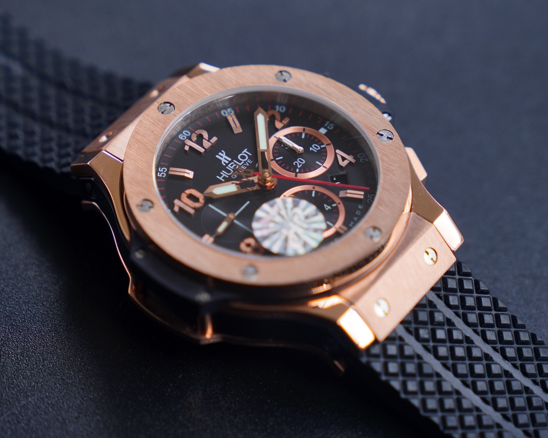 Erleben Sie raue Eleganz mit der Hublot Big Bang 301.PX.130.RX Replik. Es ist eine Uhr, die industrielles Design nahtlos mit luxuriösem Handwerk verbindet. In einem 44 mm großen Gehäuse aus rotgoldenem Edelstahl ist diese Uhr ein stilvolles Statement, ohne aufdringlich zu wirken. Das matte schwarze Zifferblatt beherbergt drei funktionierende Unterzifferblätter, geprägte Stundenindizes und markante Zeiger für bessere Lesbarkeit. Ein dezentes Datumsfenster zwischen 4 und 5 Uhr verstärkt ihren utilitaristischen Charme.