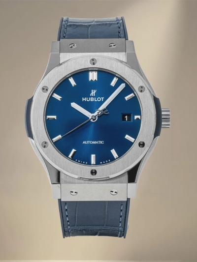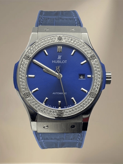 Ελβετικό Ρολόι Ανδρικό Hublot Classic Fusion Replica 42mm Μπλε Καντράν Διαμαντένια Βάση Τιτανίου