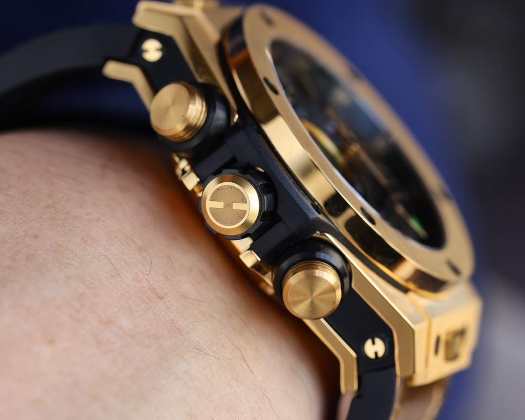Κατασκευασμένο από ένα ανθεκτικό ατσάλι με χρυσή απόχρωση, το ρολόι κάνει δήλωση μόδας χωρίς να θυσιάζει την αντοχή. Ο ιμάντας διαθέτει φυσικό μαύρο καουτσούκ στην κάτω πλευρά και υψηλής ποιότητας δέρμα σε χρυσό χρώμα στην εξωτερική επιφάνεια. Αυτό προσφέρει άνεση και μια κομψά αθλητική εμφάνιση. Χρησιμοποιεί κρύσταλλο ζαφείρι ανθεκτικό στις γρατσουνιές. Είναι επίσης αδιάβροχο έως 50 μέτρα.