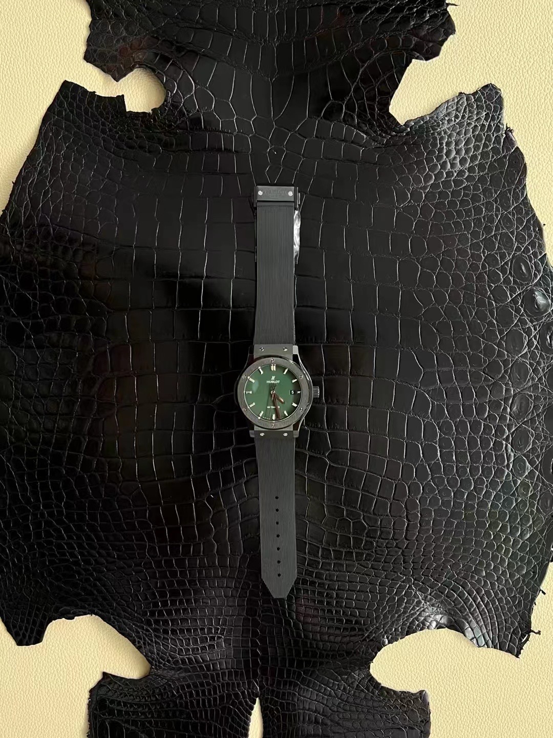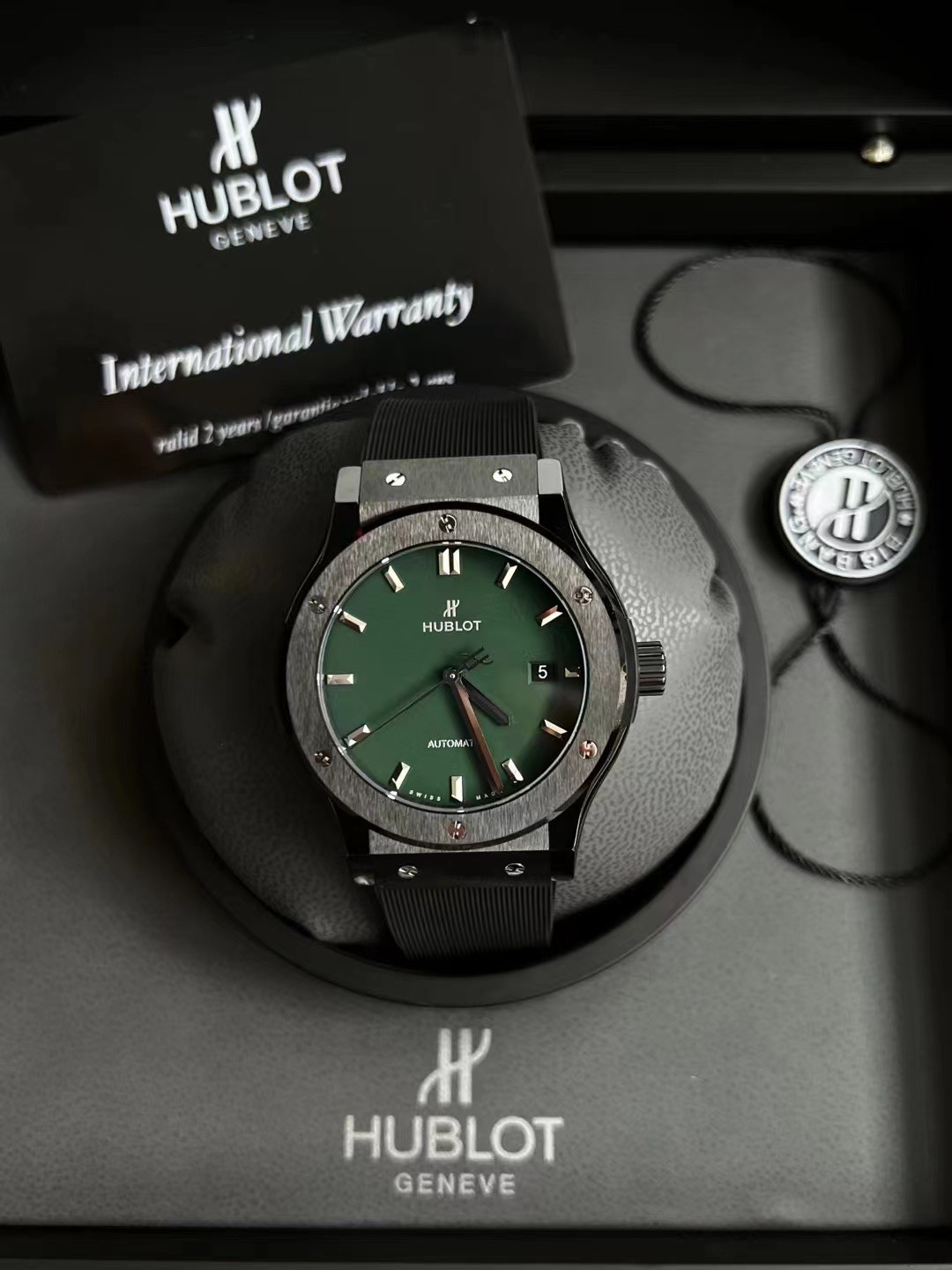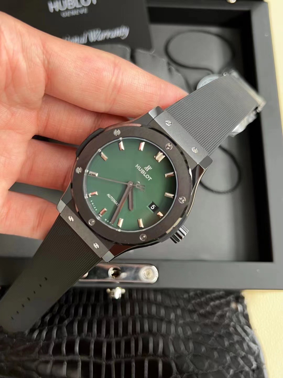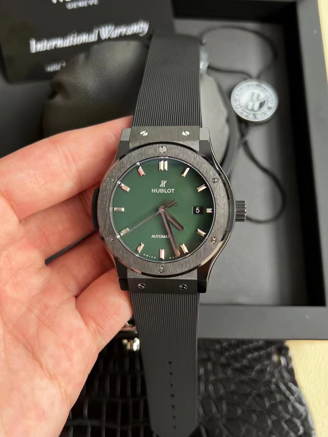 Ρολόι Αντίγραφο Hublot Classic Fusion 542.CM.1171.RX με Πράσινο Καντράν – Μαύρη Κεραμική Θήκη & Λουρί από Καουτσούκ