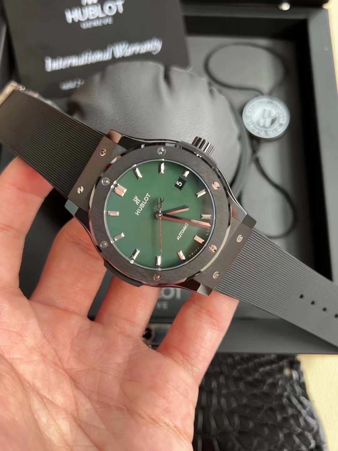 Αυτή η replica Hublot Classic Fusion 542.CM.1171.RX έχει ένα κομψό στυλ και έρχεται με μια μαύρη κεραμική θήκη. Η θήκη της είναι ανθεκτική και ελαφριά. Το ρολόι εκπέμπει μια έντονα μοντέρνα εμφάνιση. Έρχεται με πράσινο καντράν και 3D δείκτες ωρών. Μια οπή ημερομηνίας βρίσκεται στη θέση 3 η ώρα.