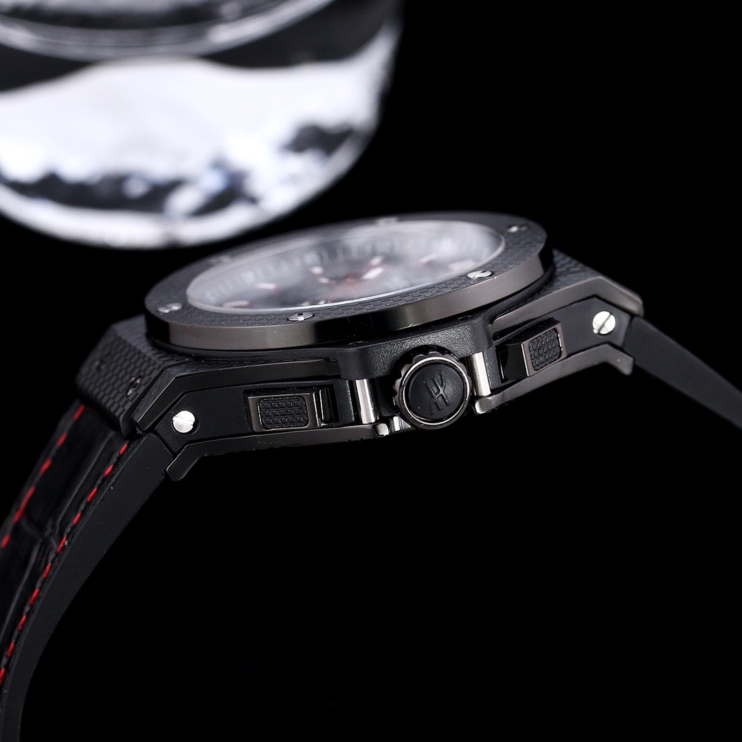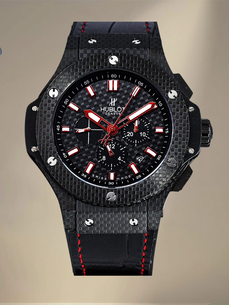 Αυτή η replica Hublot Big Bang 301.QX.1724.RX διαθέτει έναν προηγμένο μαύρο καντράν από ανθρακονήματα με κόκκινες φωτεινές δείκτες, δείκτες ωρών και εντυπωσιακές κόκκινες λεπτομέρειες. Το ρολόι είναι κατασκευασμένο από μια μαύρη θήκη και στεφάνη από ανθρακονήματα. Το ρολόι είναι ανθεκτικό αλλά και κομψό, μοντέρνο. Ο τολμηρός μαύρος δερμάτινος ιμάντας του με κόκκινες ραφές συνδυάζει την πολυτέλεια με μια σπορ αίσθηση.