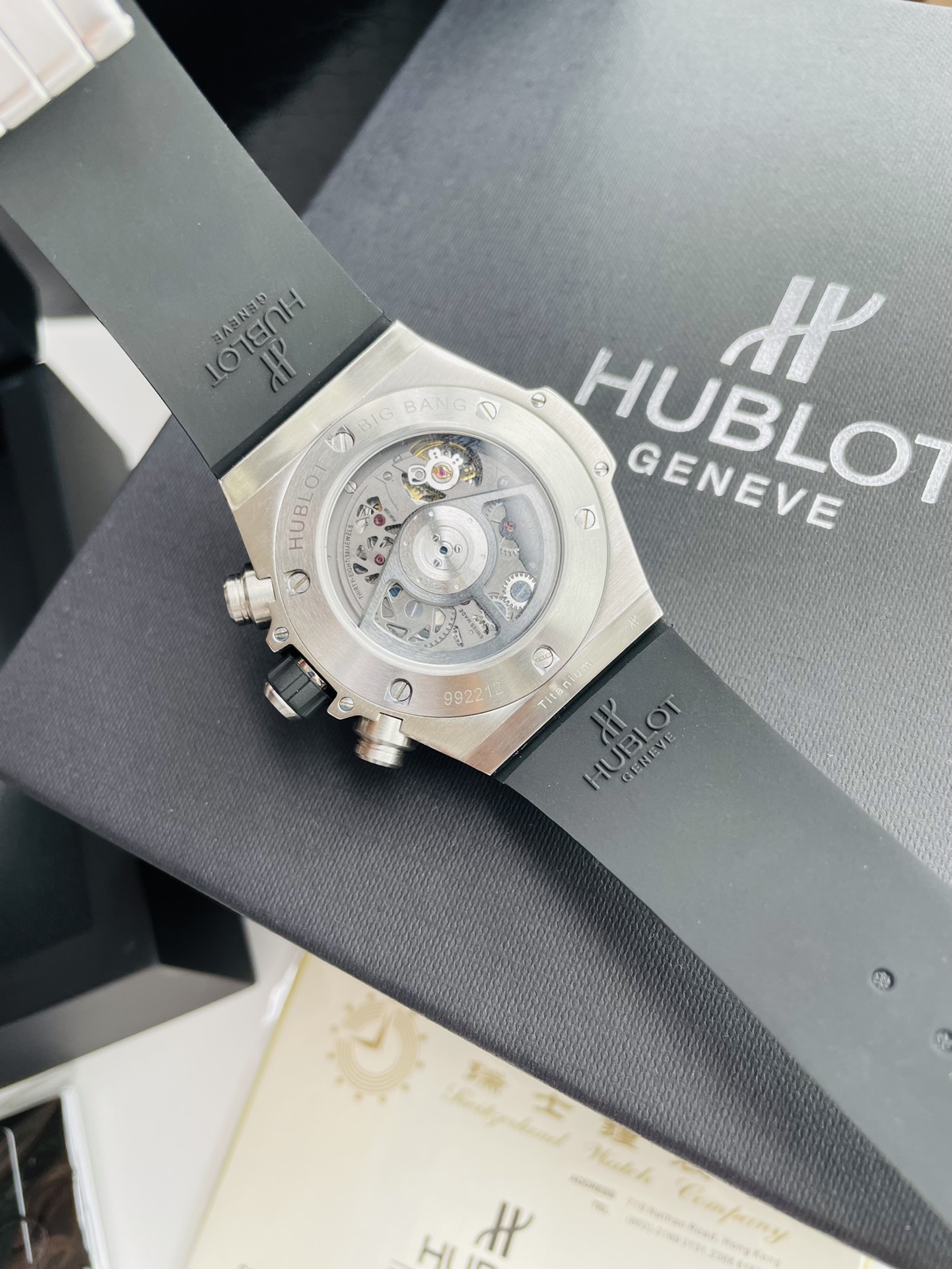 Luksus Hublot Big Bang Unico 411.NX.1170.RX.0904 -kopio titaani-kello, jossa on sveitsiläinen mekanismi ja luuranko-kellotaulu