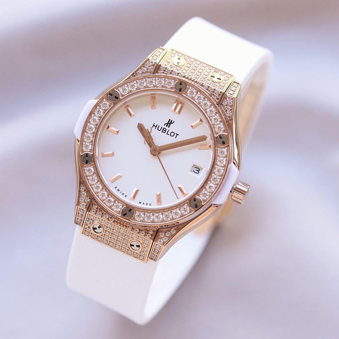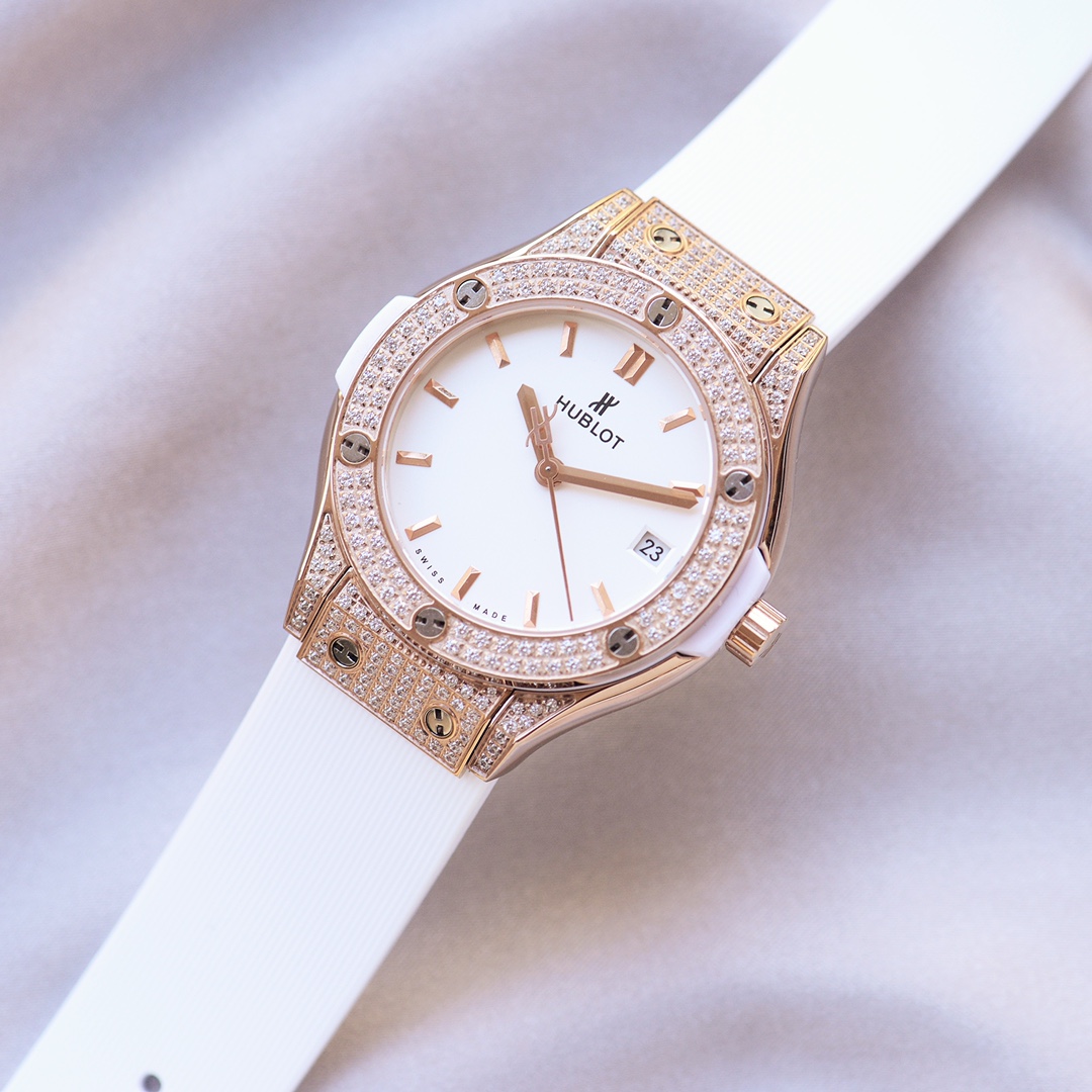 Olipa kyseessä toimisto, ilta ulkona tai vain arjen hienostuneisuuden tuominen, tämä timanttikoristeltu Hublot Classic Fusion -replika on modernin luksuksen määritelmä, jossa on ainutlaatuista naisellista viehätystä.