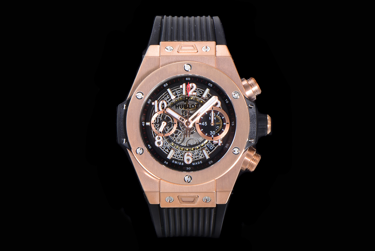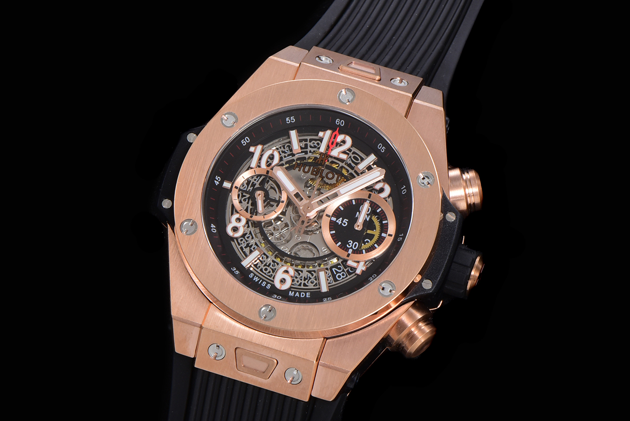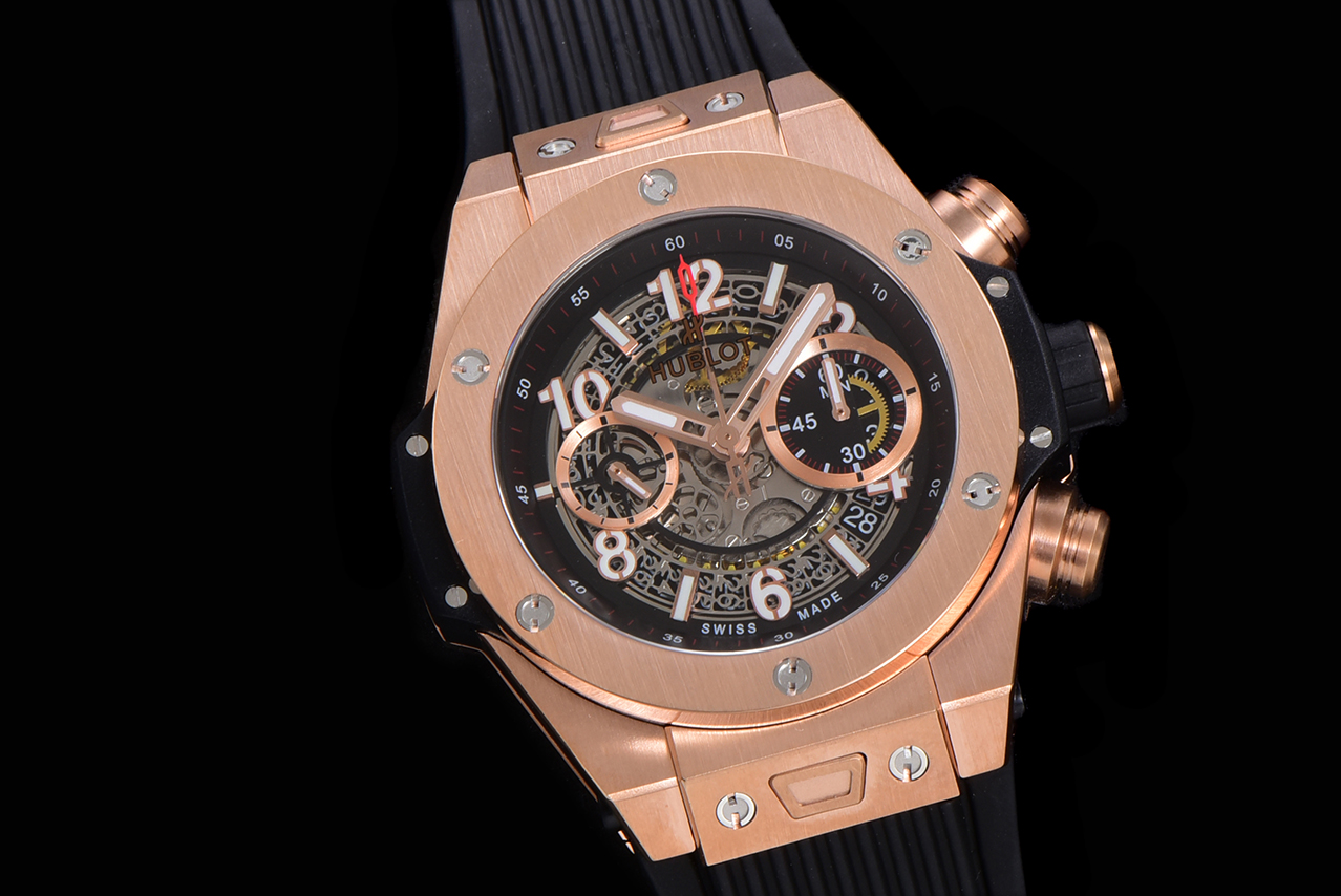Montre Réplique AAA Swiss Hublot Big Bang Unico King 411.OX.1180.RX avec bracelet noir – Cadran squelette, boîtier plaqué or rose