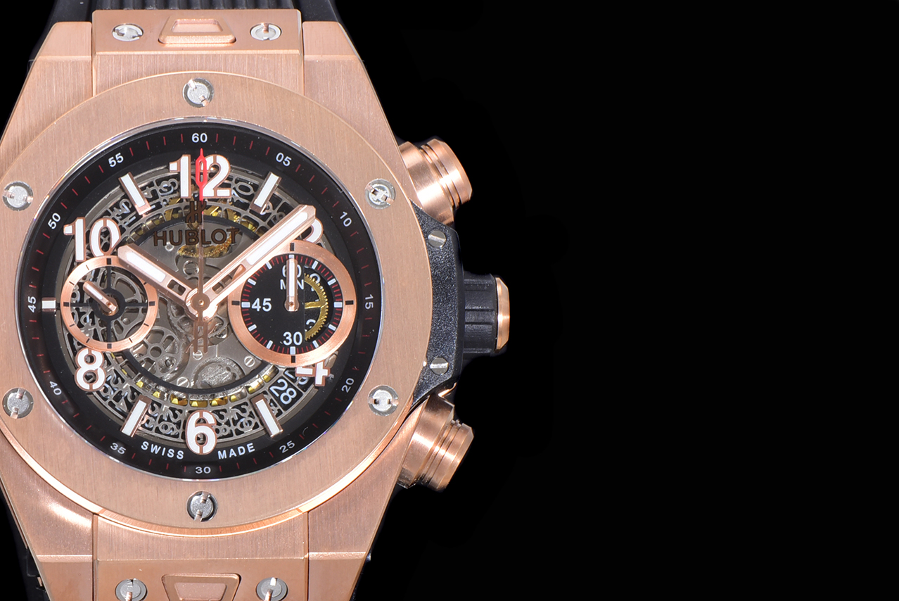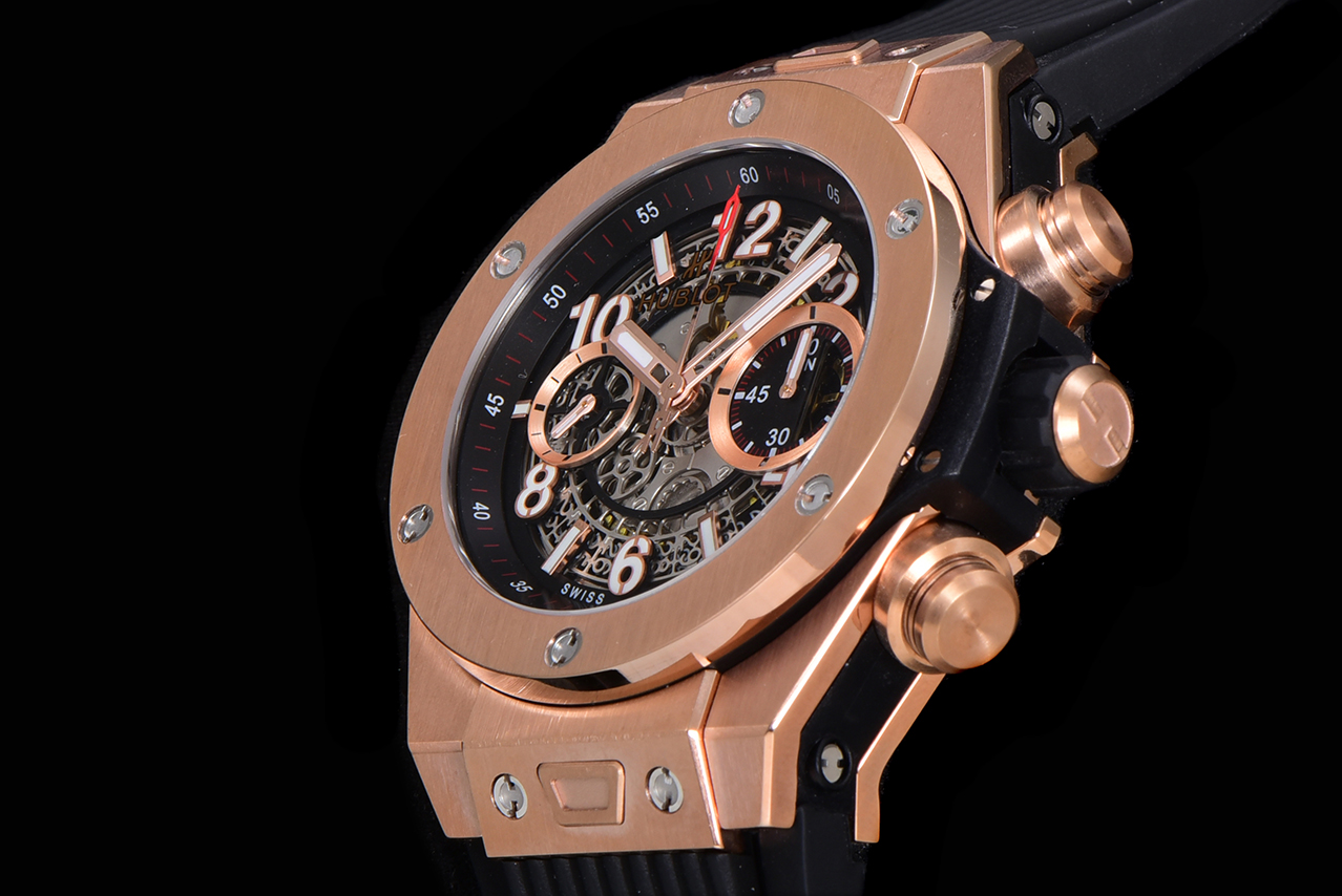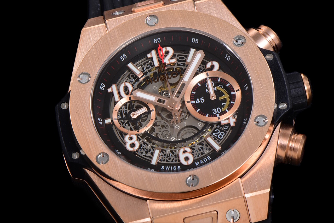 Montre Réplique AAA Swiss Hublot Big Bang Unico King 411.OX.1180.RX avec bracelet noir – Cadran squelette, boîtier plaqué or rose