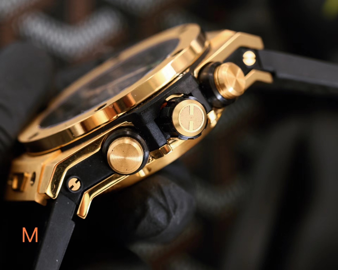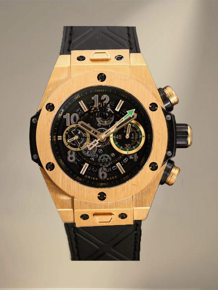 Dotée d'un mouvement automatique suisse robuste et d'un poids de rotor surprotégé, elle possède une stabilité accrue et des taux de réparation ultra-bas. Le bracelet en caoutchouc noir naturel offre un confort et une portabilité ultimes, convenant à un usage quotidien. Créée pour l'homme qui apprécie l'élégance et le raffinement, cette contrefaçon de grade AAAA se distingue par son apparence élégante en or rose et ses fonctions de chronographe raffinées. Que ce soit pour des réunions d'affaires ou des soirées en ville, cette montre incarne la masculinité raffinée par excellence.