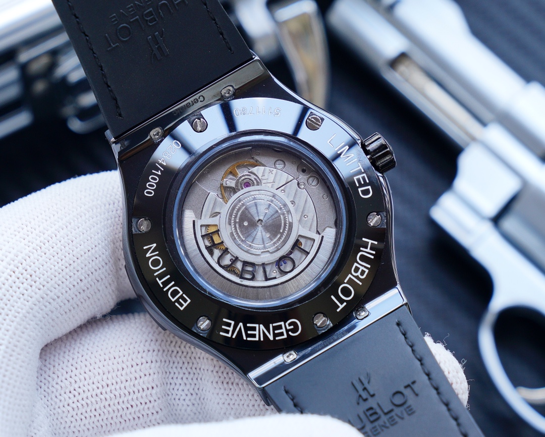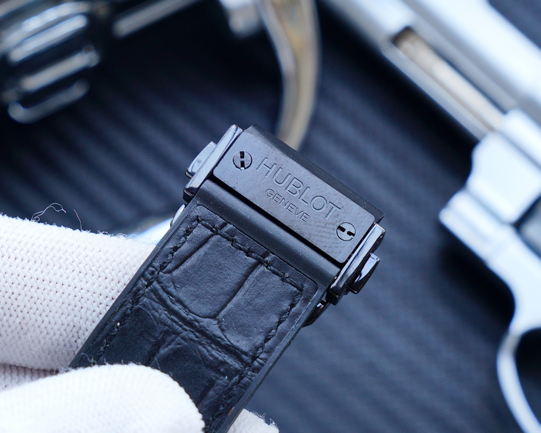 Hublot Classic Fusion Replica 42mm Dial Hitam, Jam Tangan Pria dengan Strap Kulit Hitam & Karet