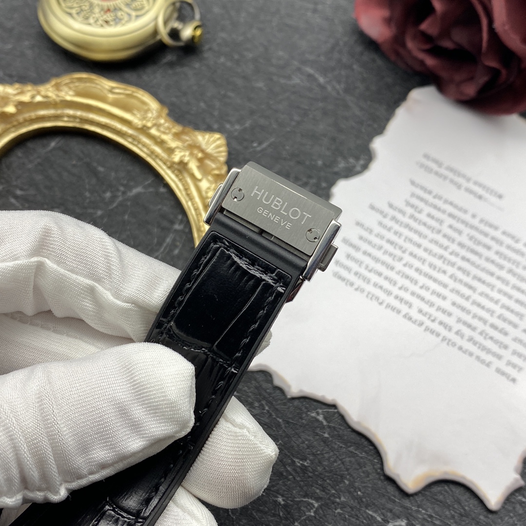 De met diamanten bezette lunette straalt schittering uit. Het heeft zes klassieke "H"-vormige schroeven op de lunette. De zwarte leren band is prachtig en comfortabel om te dragen. Het heeft een Zwitsers uurwerk. En het beschikt over saffierglas dat krasbestendig is. Het is tot 30 meter waterdicht. Geweldig voor dagelijks gebruik.