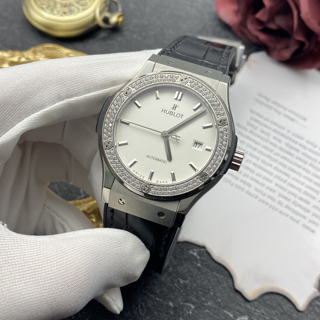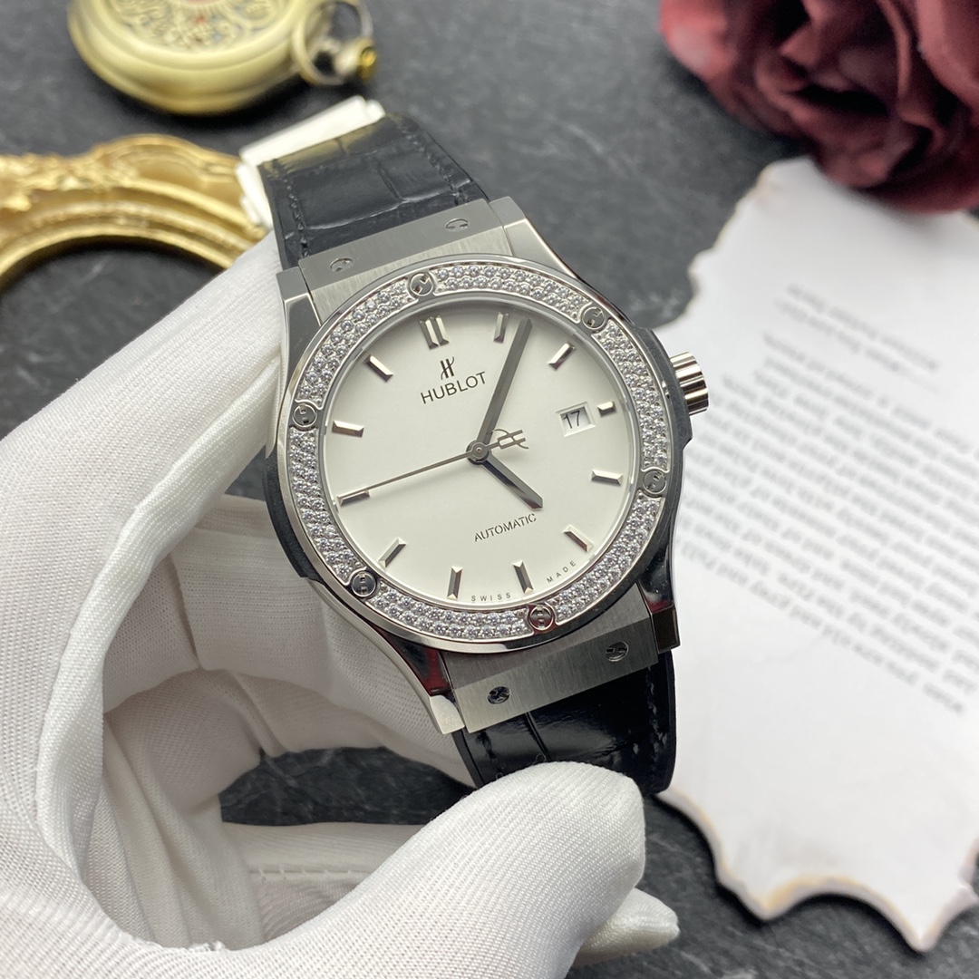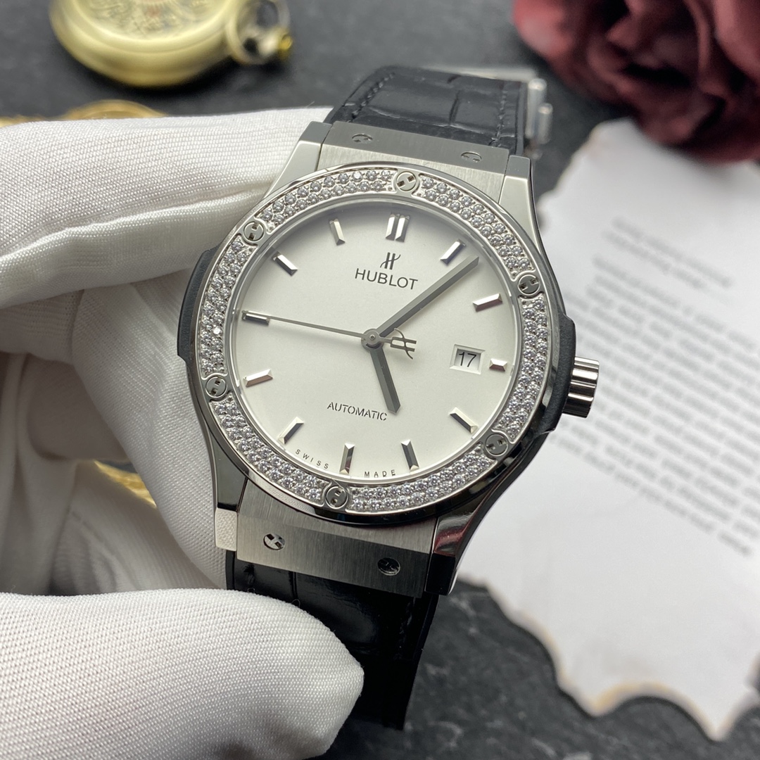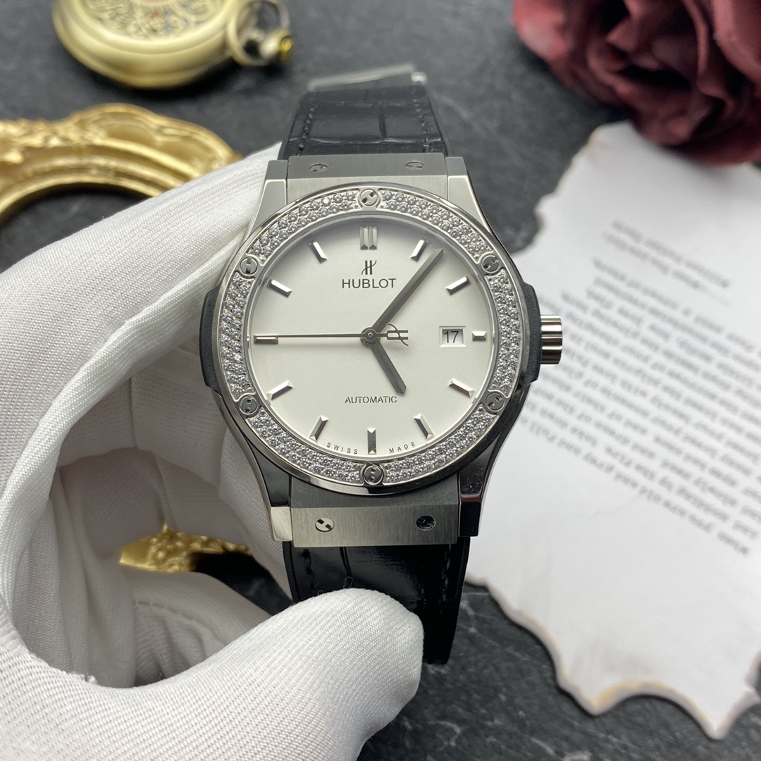 Zwitserse Hublot Classic Fusion 582.NX.2610.RX.1204 Replica Horloge Voor Vrouwen – Titanium Behuizing, Diamanten Lunette, Witte Wijzerplaat
