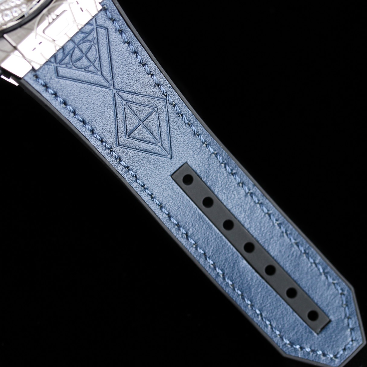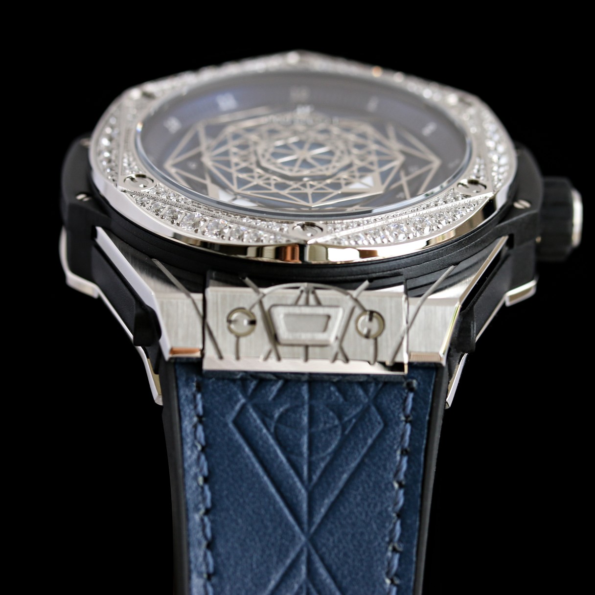 Met een waterbestendigheid van 30 meter is de Big Bang Sang Bleu een statement van weelde en een bewijs van kracht en vakmanschap. Dit horloge is perfect voor iedereen die houdt van hedendaagse kunst in horlogemakerij en een statement van uniciteit met tijdloze elegantie wil maken.