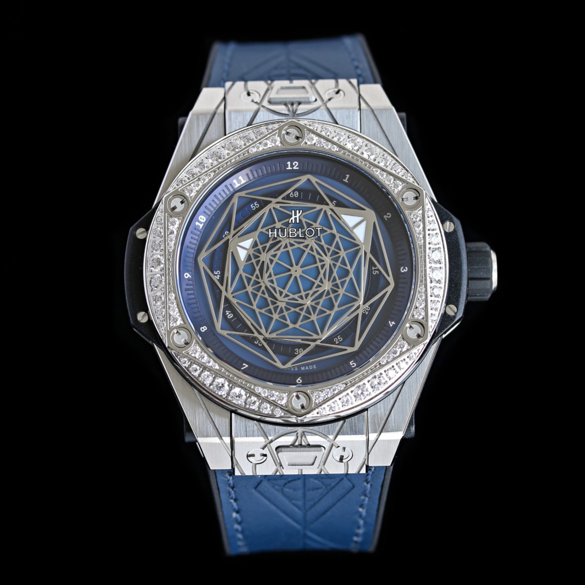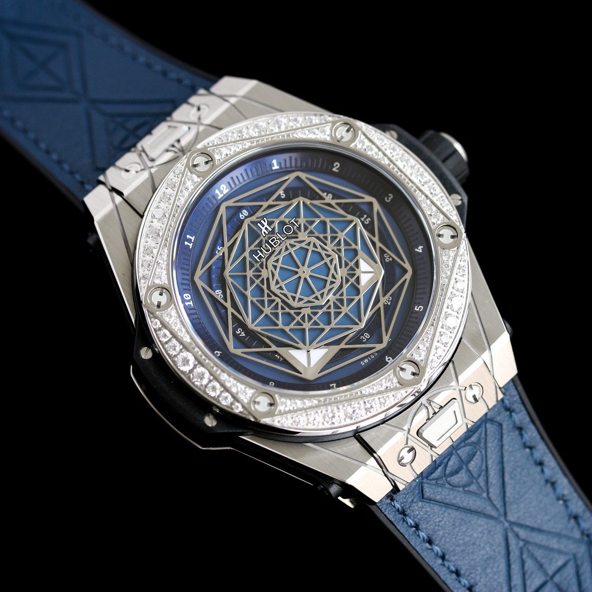 Zwitserse Replica Hublot Big Bang Sang Bleu 465.SS.7179.VR.1204.MXM19 Blauwe Wijzerplaat Diamanten Bezel 39mm Luxe Horloge