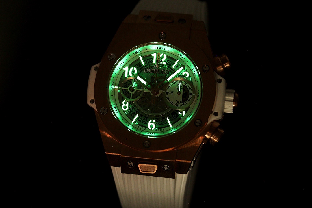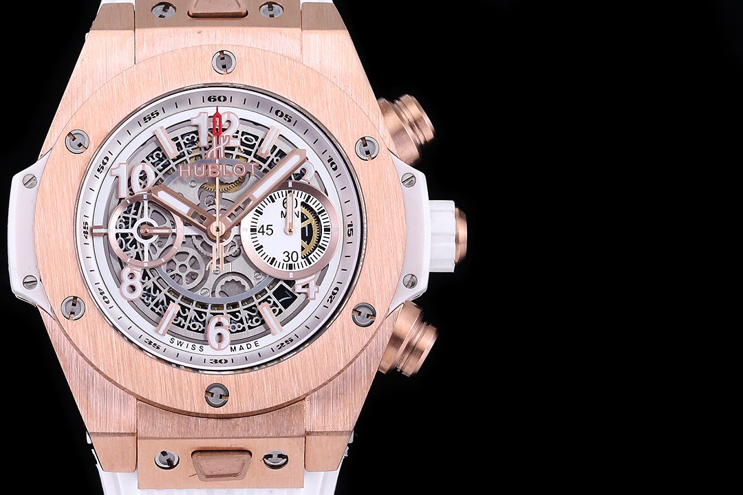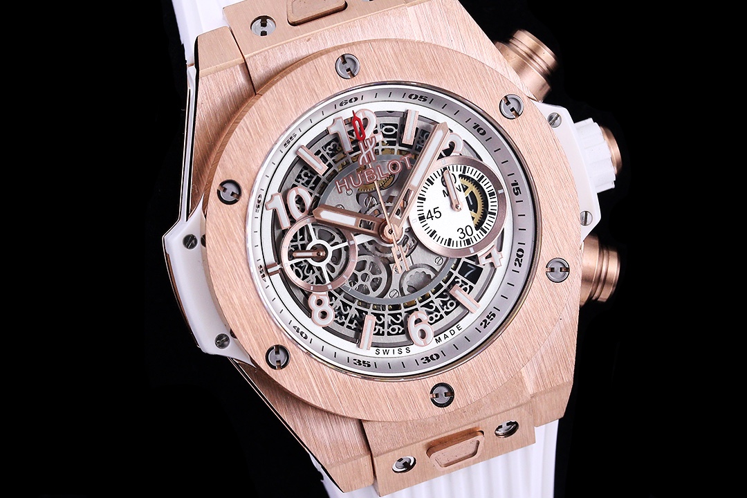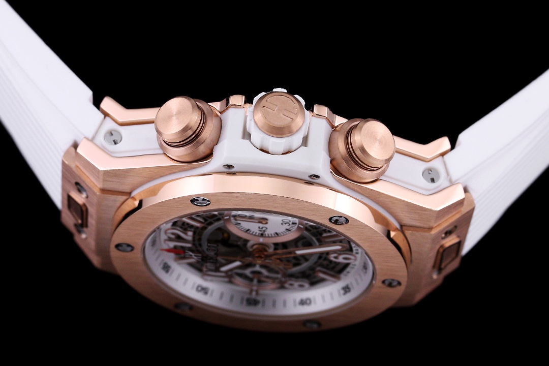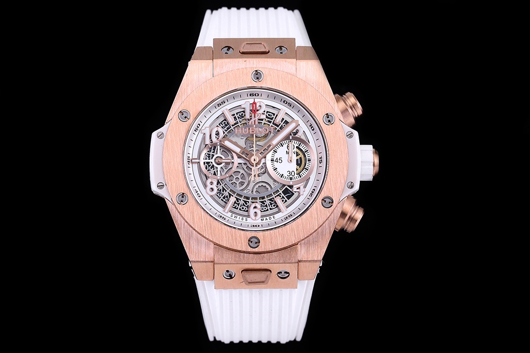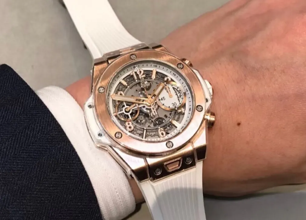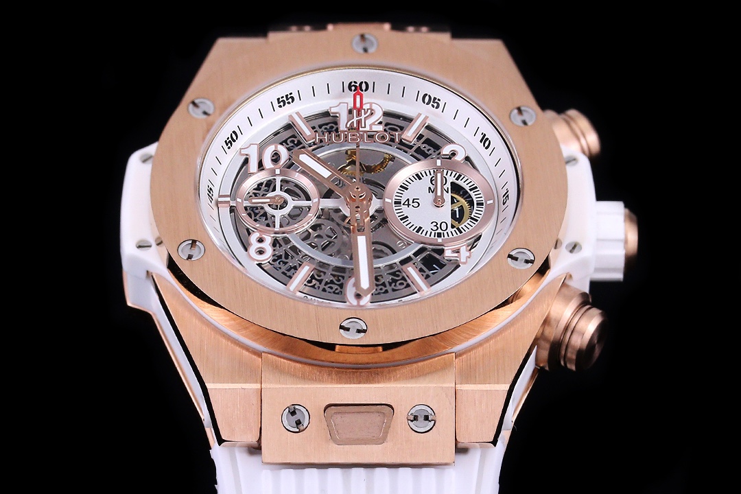 Sveitsisk replika Hublot Big Bang Unico 441.OE.2010.RW skjelettskive 42mm klokke på hvit gummirem