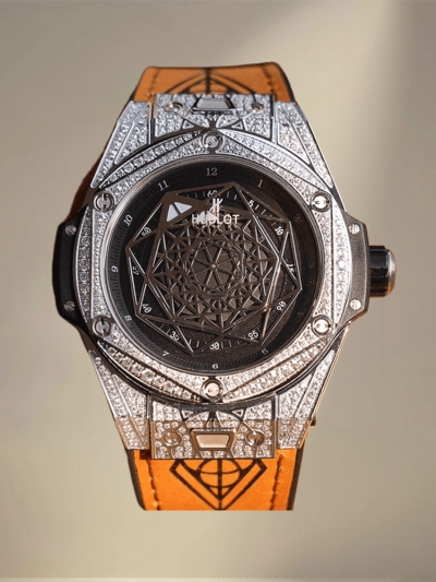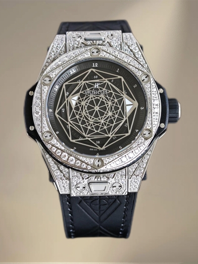 นาฬิกา Hublot Big Bang 415.NX.1112.VR รุ่นเลียนแบบ ขับเคลื่อนด้วยกลไกสวิส หน้าปัดกระดูกสันหลัง ประดับเพชร ตัวเรือนไทเทเนียม ขนาด 45 มม.
