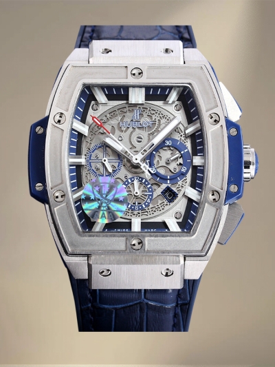 นาฬิกาเรพลิกา Hublot Spirit of Big Bang 601.OX.7180.LR คุณภาพสูง – หน้าปัดสเกเลตันสวิสพร้อมสายหนังจระเข้สีน้ำเงิน