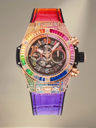 Hublot Big Bang 411.NM.1170.RX AAAA Replica – หน้าปัดโครงกระดูกเพชรสายรุ้ง