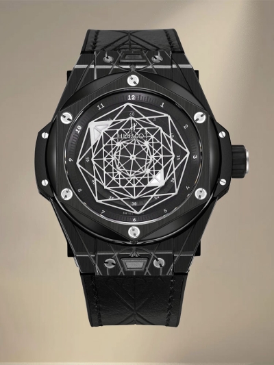 นาฬิกาผู้ชายรุ่น Replica Hublot Big Bang Hexagon หน้าปัดสีดำ กลไกอัตโนมัติ Super Clone ขนาด 45MM ระบบสวิส
