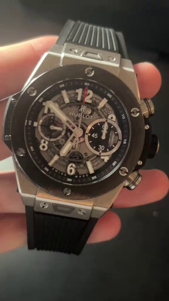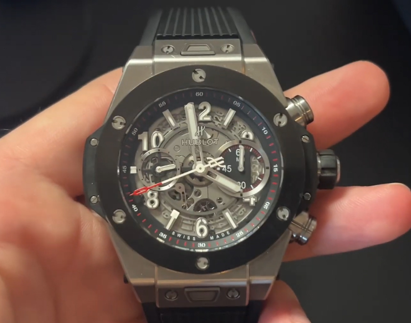 นาฬิกาเรือนจำลอง Hublot Big Bang Unico 411.NM.1170.RX หน้าปัดสเกเลตัน ขนาด 45 มม. ตัวเรือนไทเทเนียม