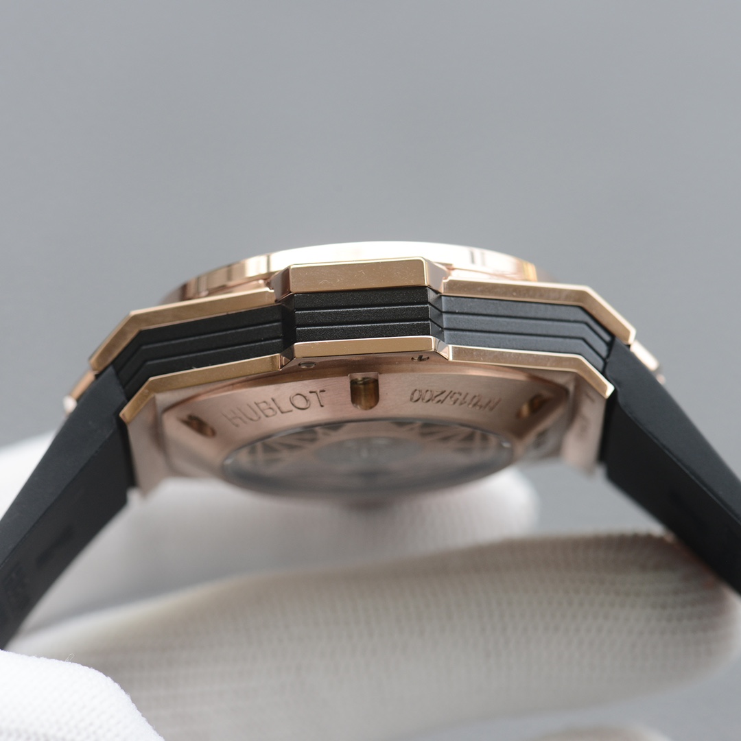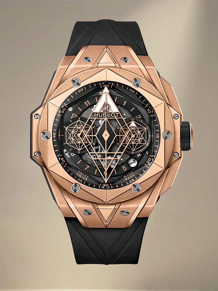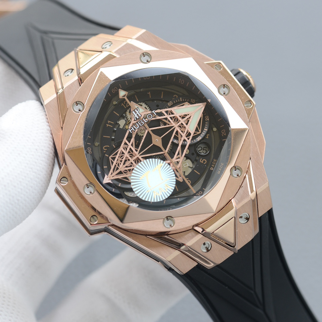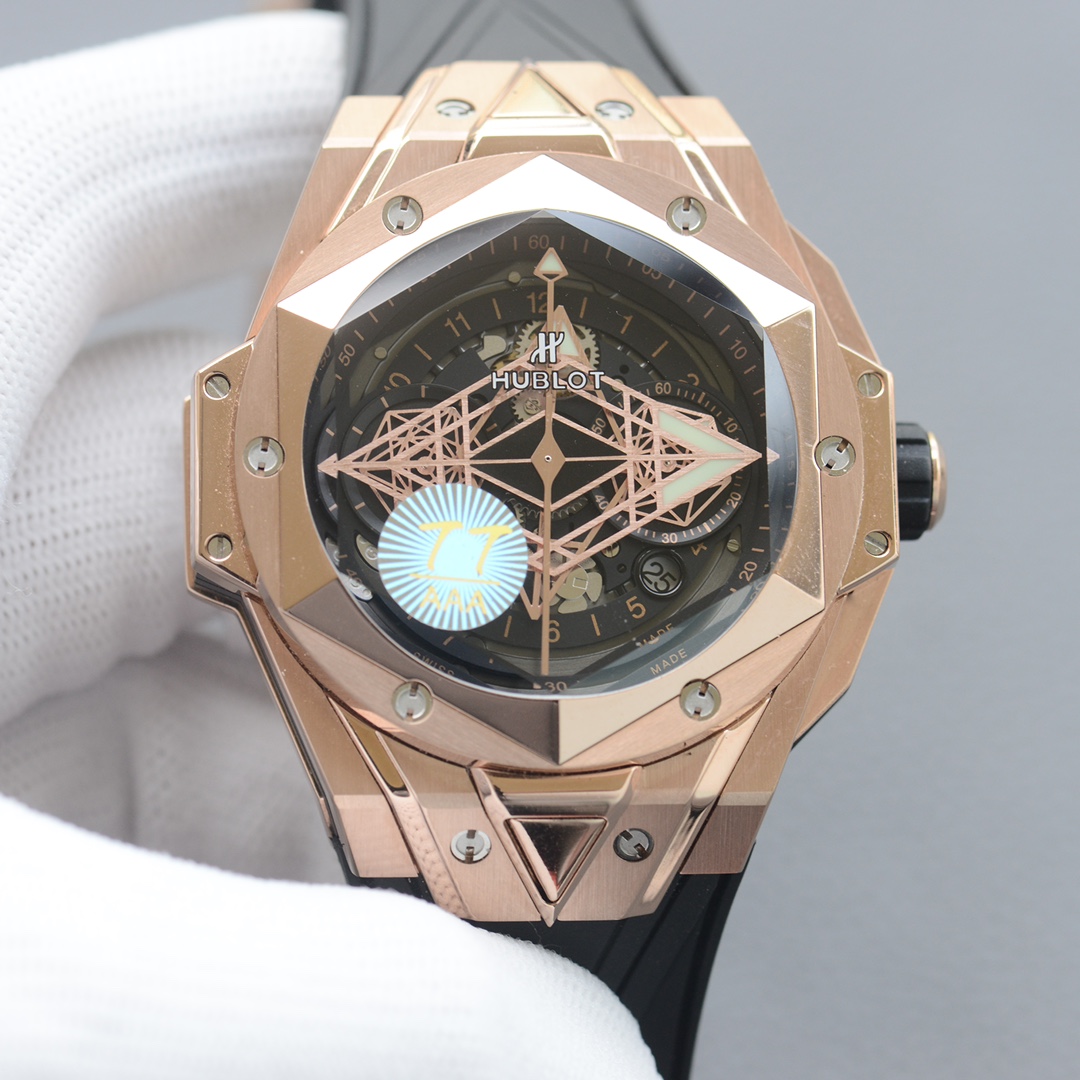 ขอต้อนรับนาฬิกา Hublot Big Bang Unico Sang Bleu II Replica ที่ดีที่สุด ซึ่งเป็นนาฬิกาที่มีดีไซน์ที่น่าทึ่งผสมผสานกับงานฝีมือจากสวิตเซอร์แลนด์ นาฬิกาจำนวนจำกัดนี้มีตัวเรือนทองคำ King Gold ขนาด 45 มม. และขอบนาฬิกาหกเหลี่ยมที่น่าตื่นตาตื่นใจถูกยึดไว้ด้วยสกรูไทเทเนียมรูปตัว H หกตัว สัญลักษณ์เรขาคณิตบนตัวเรือนและหน้าปัดดูโดดเด่น แสดงถึงสไตล์ที่กล้าหาญของ Hublot