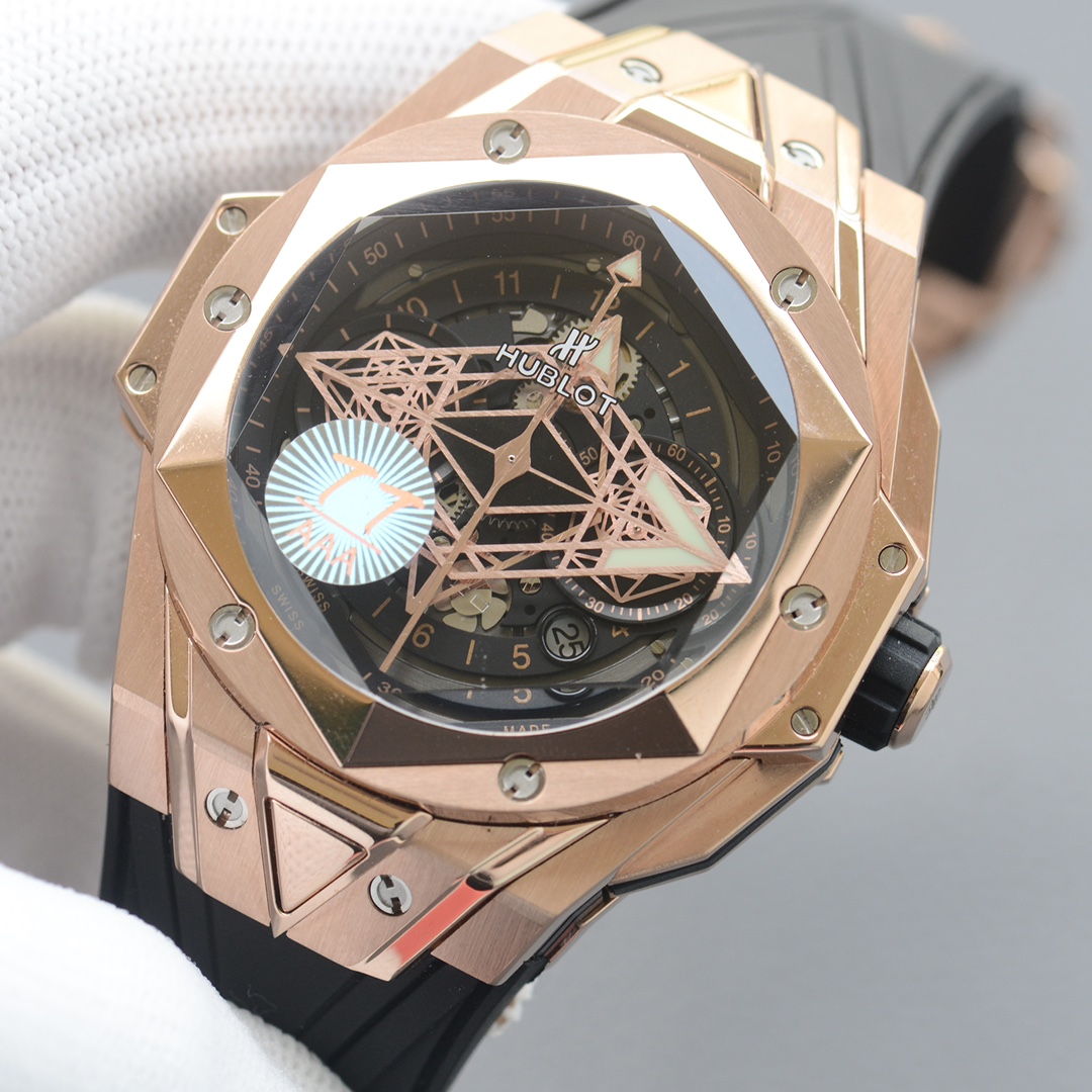 นาฬิกา Hublot Big Bang Unico Sang Bleu II รุ่นเลียนแบบที่ดีที่สุด – สายยางสีดำ