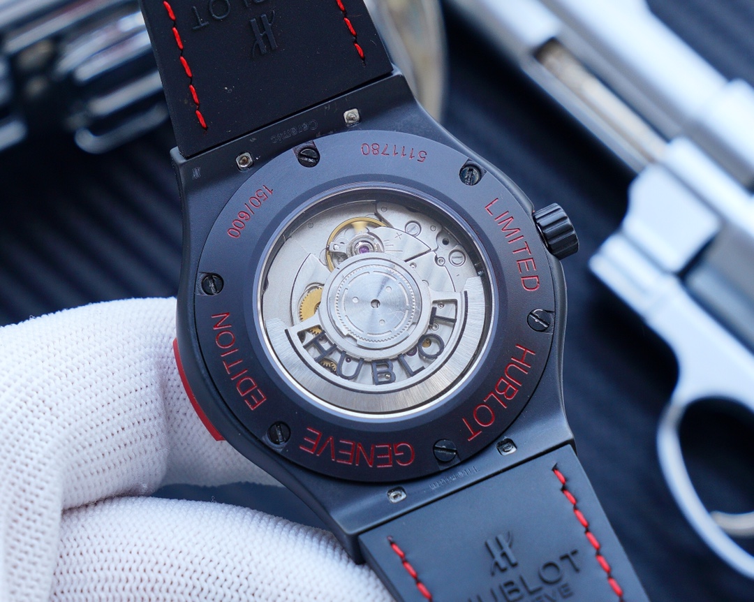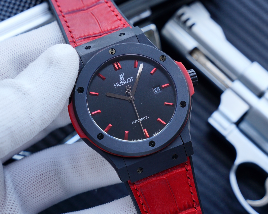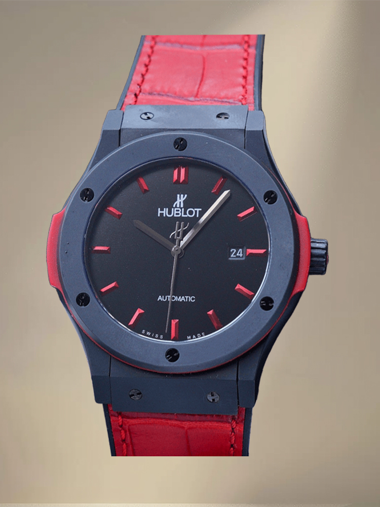 นาฬิกาเรพลิกา Hublot Classic Fusion 511.CM.1110.RX ที่ดีที่สุด – กลไกสวิส, ตัวเรือนเซรามิกสีดำ, ดีไซน์สายรัดสีแดง