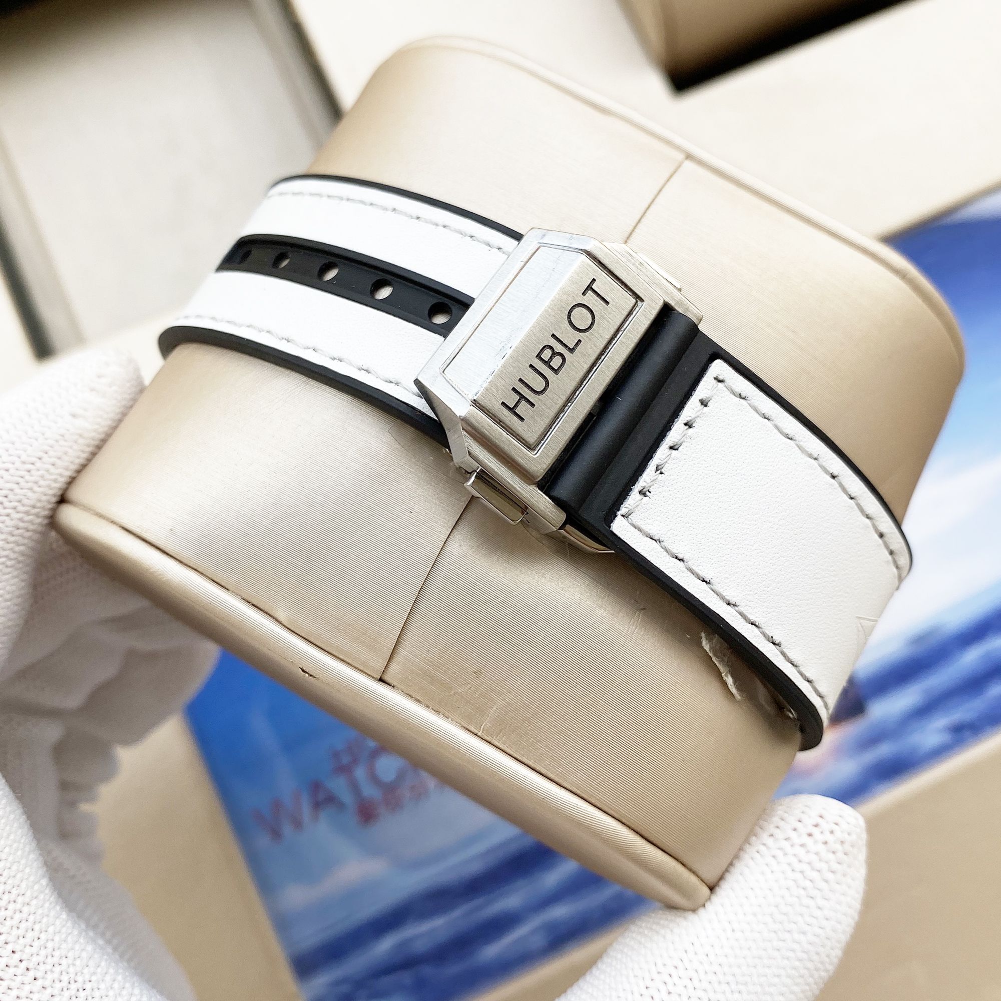 | วัสดุสายรัด | หนังสีขาว |