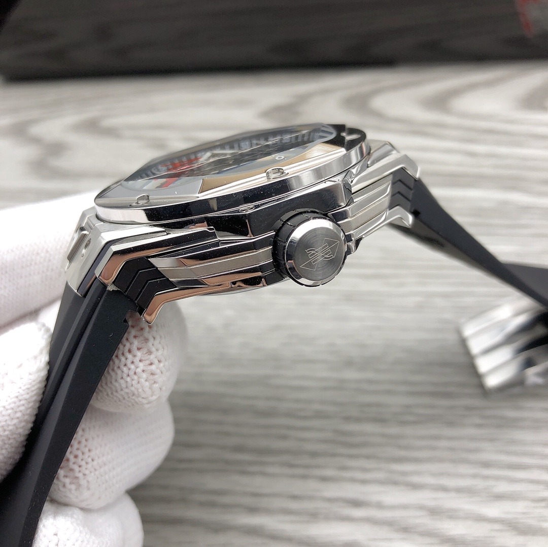 ด้วยกลไกโครโนกราฟอัตโนมัติ 7750 ที่ผลิตในสวิตเซอร์แลนด์ นาฬิกาจะทำงานได้อย่างถูกต้อง เข็มที่มีการเจาะรูและเคลือบซาตินพร้อมกับกระจกแซฟไฟร์ป้องกันการสะท้อนแสงเป็นต้นกำเนิดของความแข็งแกร่งและความชัดเจนของนาฬิกา และตัวหลังของเคสที่ทำจากไทเทเนียมเป็นต้นกำเนิดของการตกแต่งที่แข็งแรงและน้ำหนักเบา สายยางสีดำให้ความสะดวกสบายในการสวมใส่ในชีวิตประจำวัน