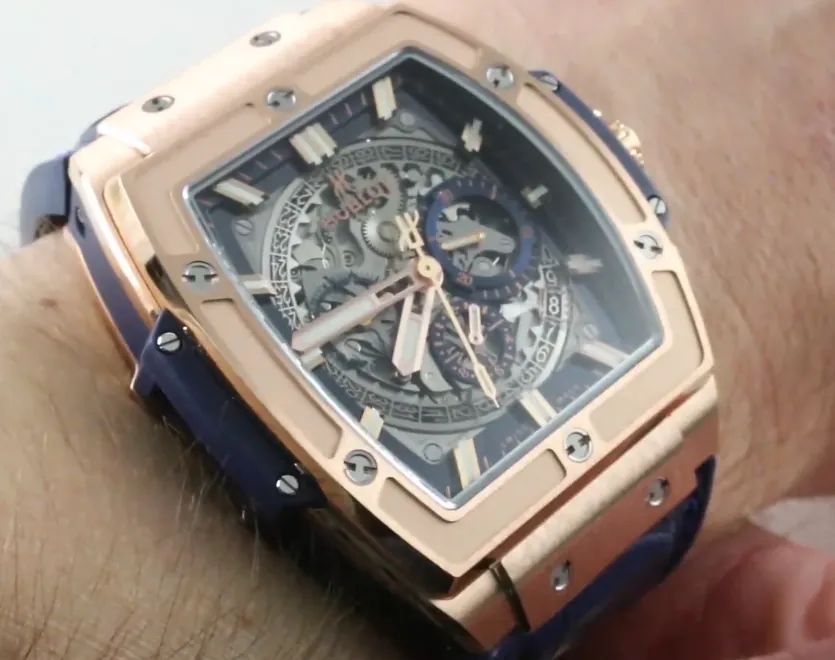 ด้วยตัวเรือนรูปทรงทอนเนาะขนาด 45 มม. ที่ทำจากทองคำ King Gold หน้าปัดแบบสเกเลตัน และเข็มนาฬิกาสีทองเรืองแสง มันเป็นชิ้นงานที่สร้างความประทับใจอย่างแท้จริง ภายในมีการเคลื่อนไหวแบบอัตโนมัติของสวิสที่ให้ฟังก์ชันโครโนกราฟที่เชื่อถือได้และสำรองพลังงานได้ถึง 50 ชั่วโมง
