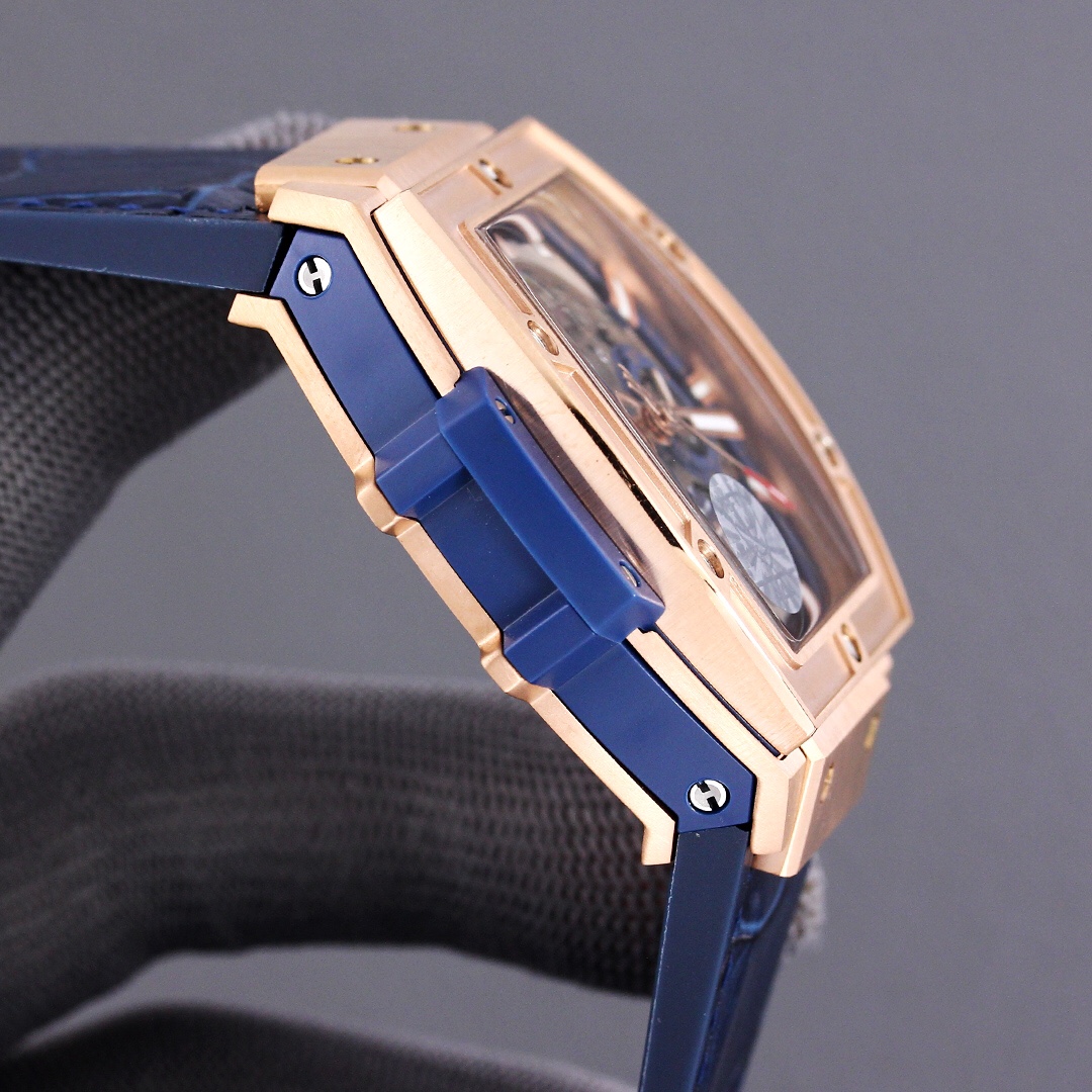 นาฬิกาเรพลิกา Hublot Spirit of Big Bang 601.OX.7180.LR คุณภาพสูง – หน้าปัดสเกเลตันสวิสพร้อมสายหนังจระเข้สีน้ำเงิน